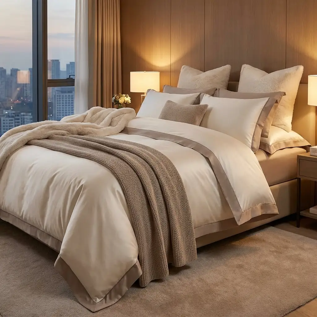 Hotel-grade linens, custom duvets, and pillows designed for deep, restorative sleep.